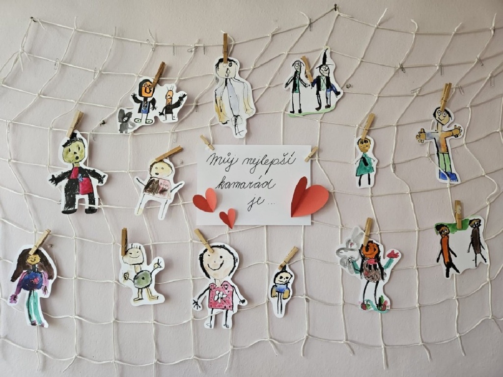 Třída Sluníček a Mravenců. Na atletickém sportovním hřišti ZŠ Přemyslovců v dopoledních hodinách.